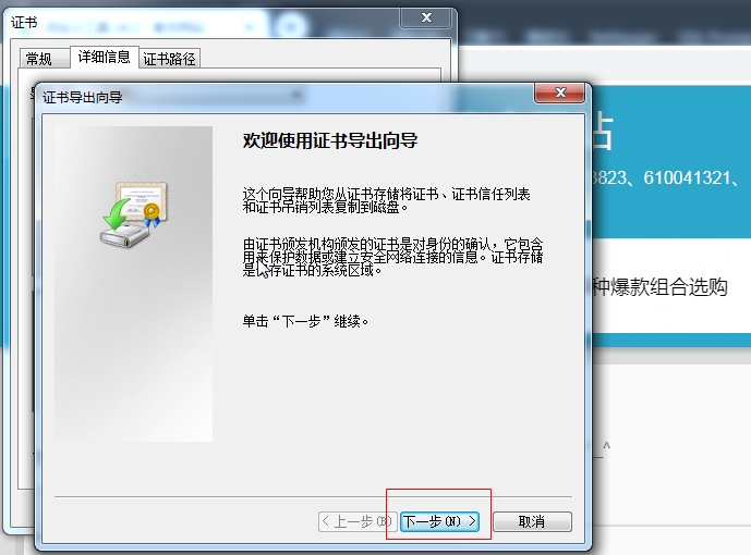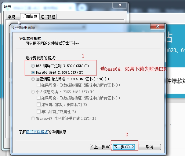 5、保存证书:请命名为“1.cer”,并且保存在与软件同一目录。